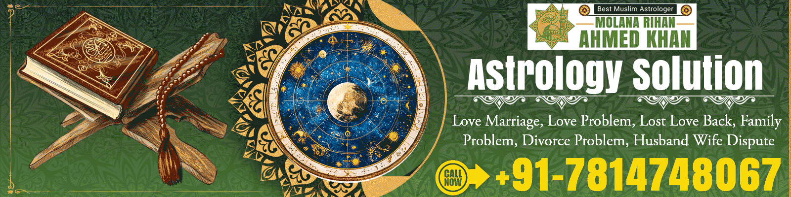 Molana Rihan Ahmed Khan is an Indian astrologer who has made people believe in astrology to serve the people. Many people come to him in search of a solution and under the guidance of it. They are capable of finding solutions to their problems. He is a person who has made people believe in spirituality and astrology just to make life better. His clientele is spreading all over the world only thanks to his work. Correct predictions, open astrological solutions and cheap services have made it popular.